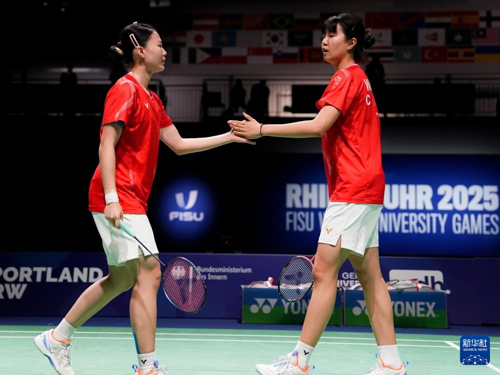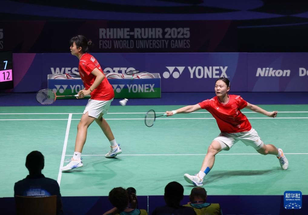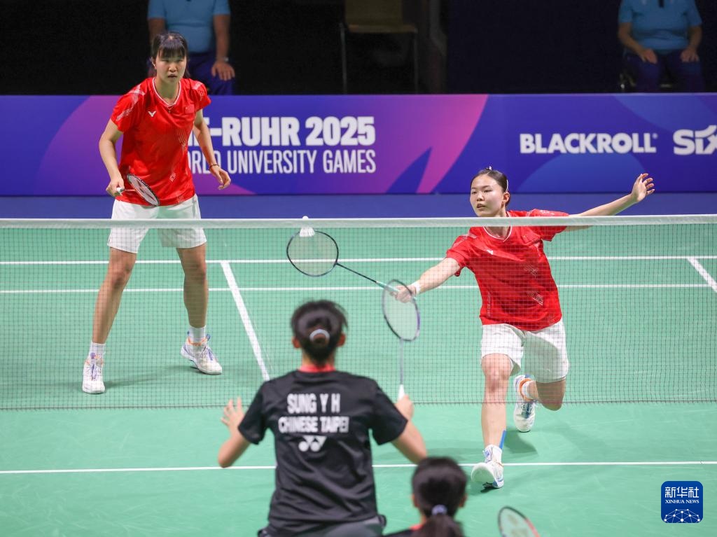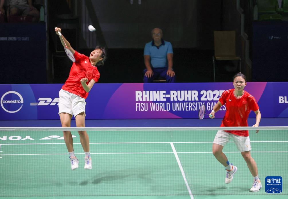 当日,在德国鲁尔河畔米尔海姆举行的2025年莱茵-鲁尔世界大学生夏季运动会羽毛球女子双打决赛中,中国组合李茜/王漪朵2比1战胜中国台北组合郑宇倢/宋佑媗获得冠军。