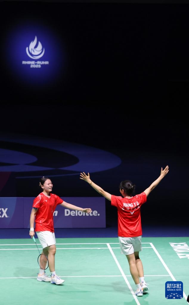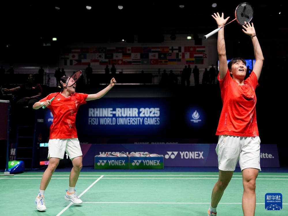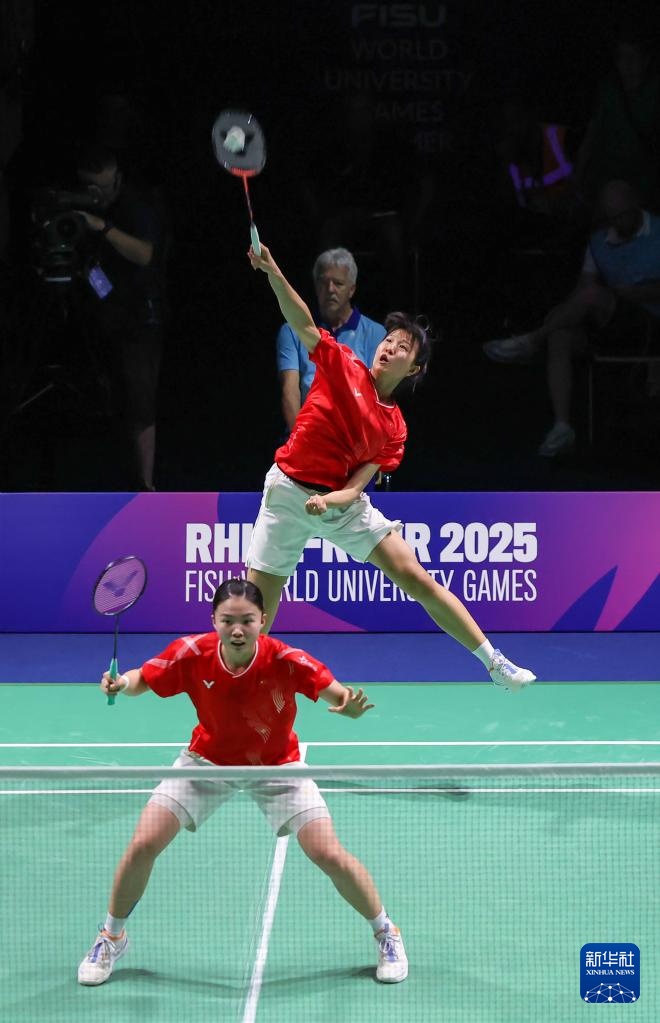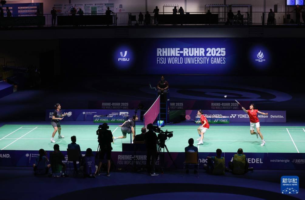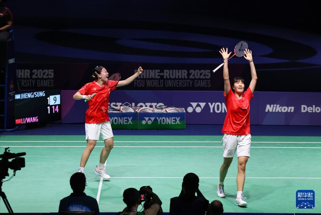 当日,在德国鲁尔河畔米尔海姆举行的2025年莱茵-鲁尔世界大学生夏季运动会羽毛球女子双打决赛中,中国组合李茜/王漪朵2比1战胜中国台北组合郑宇倢/宋佑媗获得冠军。