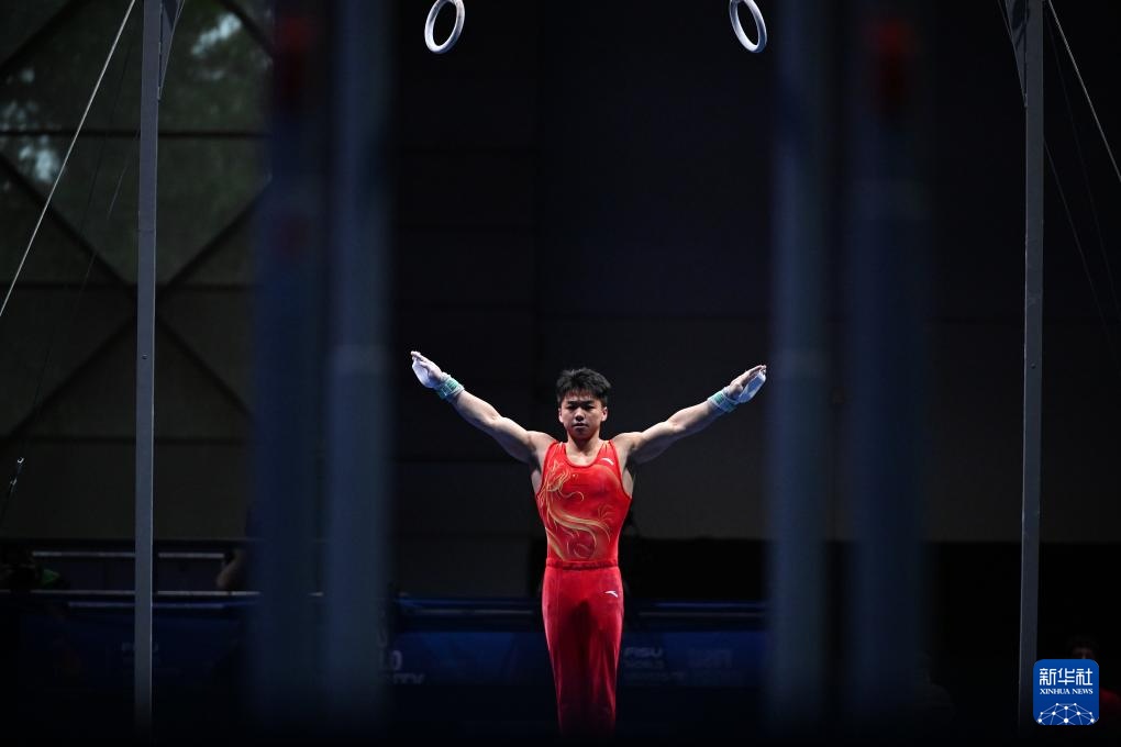 当日,2025年莱茵-鲁尔世界大学生夏季运动会体操吊环决赛在德国埃森举行。