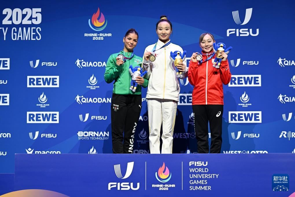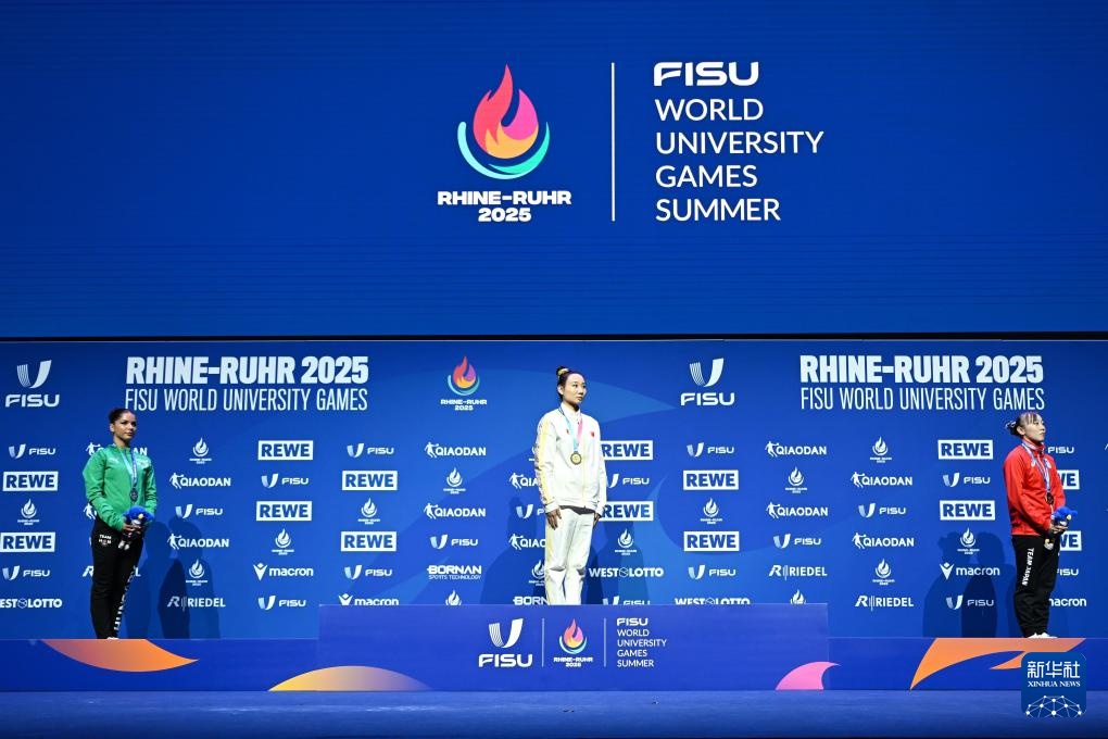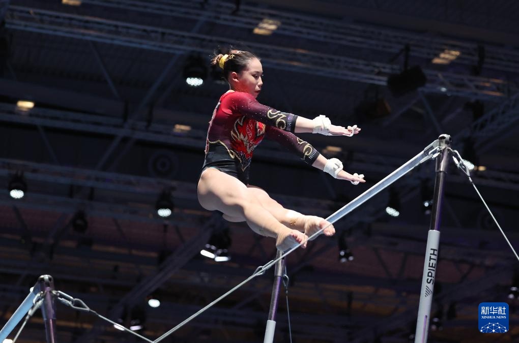 当日,2025年莱茵-鲁尔世界大学生夏季运动会体操高低杠决赛在德国埃森举行。