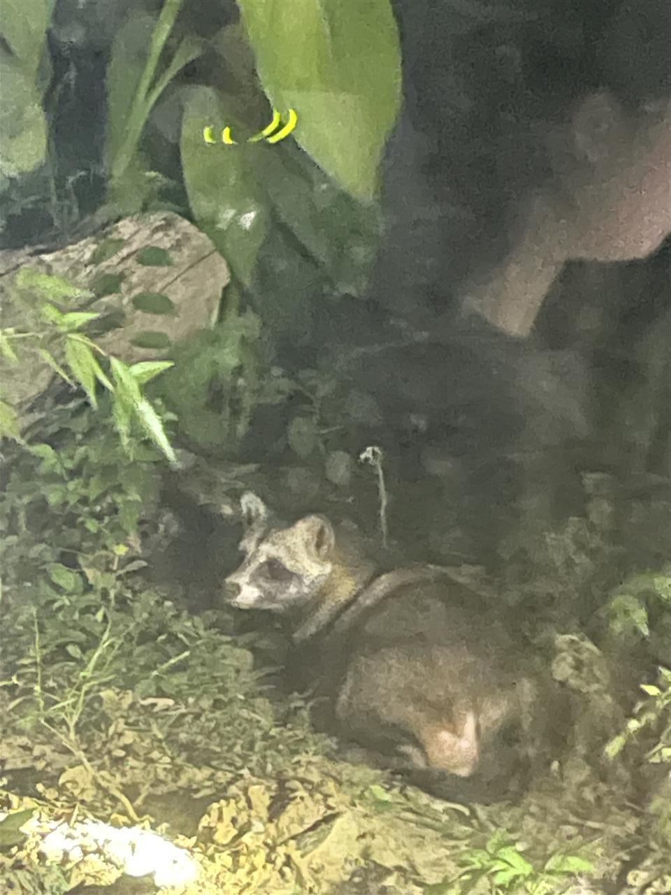 “大家知道成语‘一丘之貉’吧?这就是貉!它一般昼伏夜出。”移步到貉的家门口,隔着落地玻璃,科普老师带大家找到了正在活动的貉。