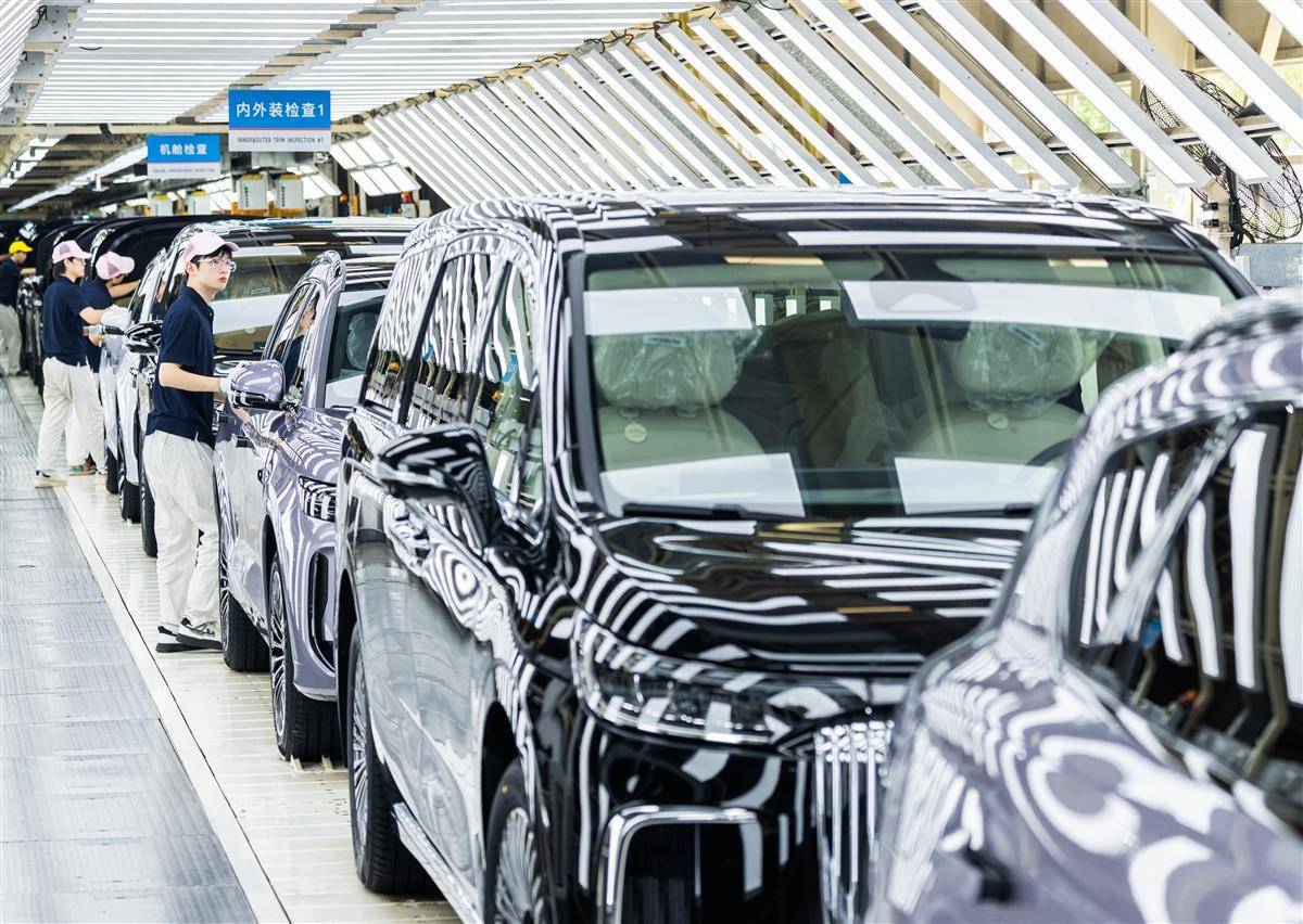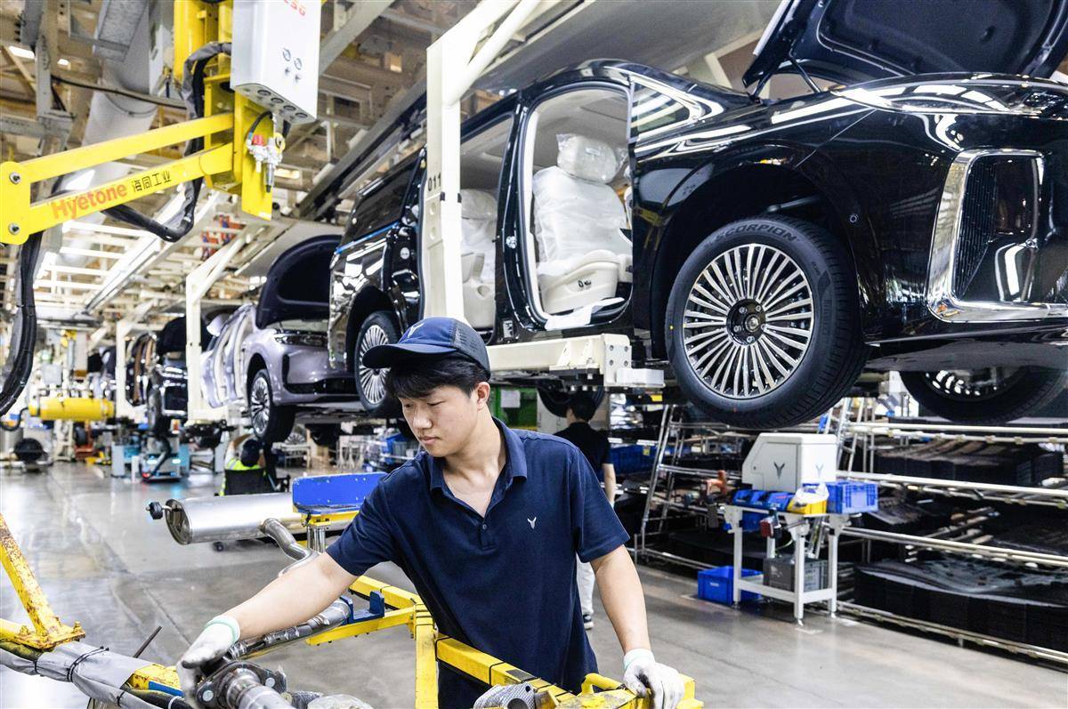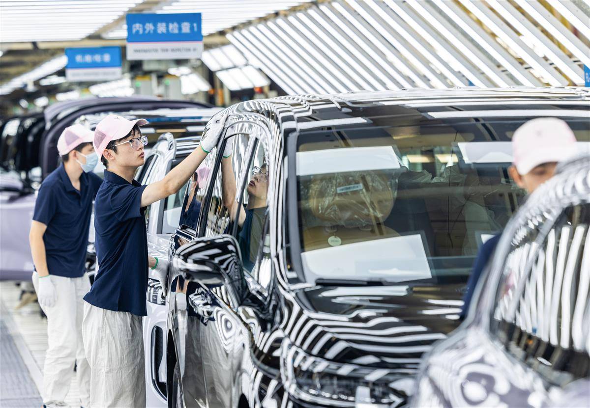 7月24日,位于武汉经开区的岚图汽车总装车间内,工人正在生产线上忙碌。