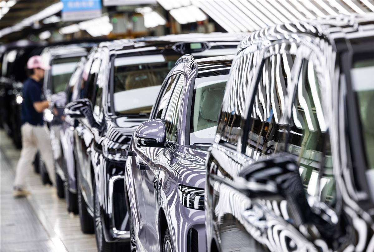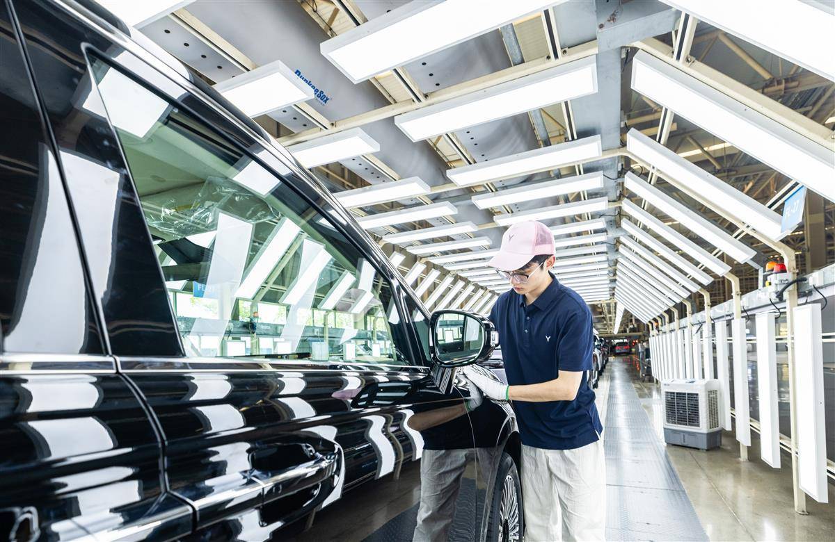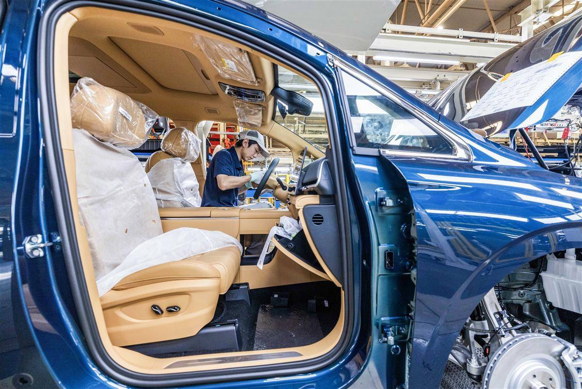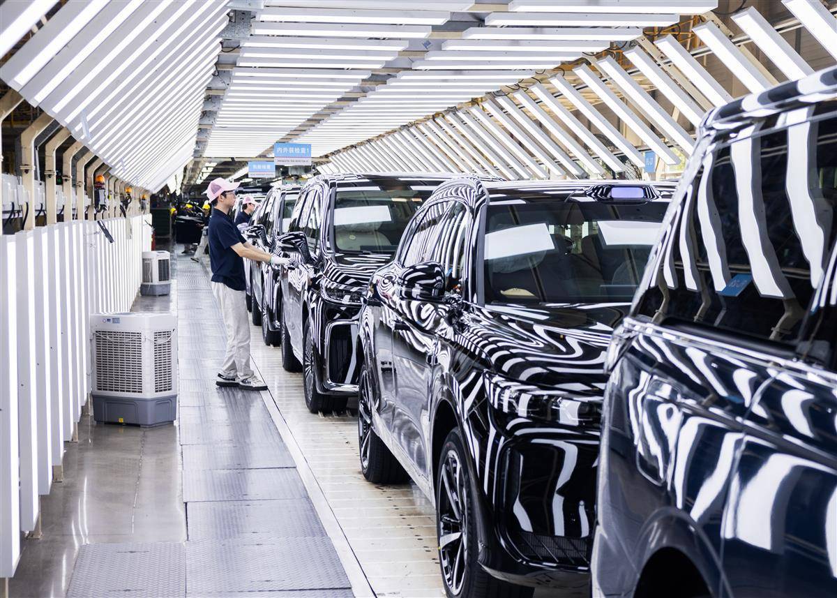 7月24日,位于武汉经开区的岚图汽车总装车间内,工人正在生产线上忙碌,岚图FREE+等车型新能源车加紧下线。