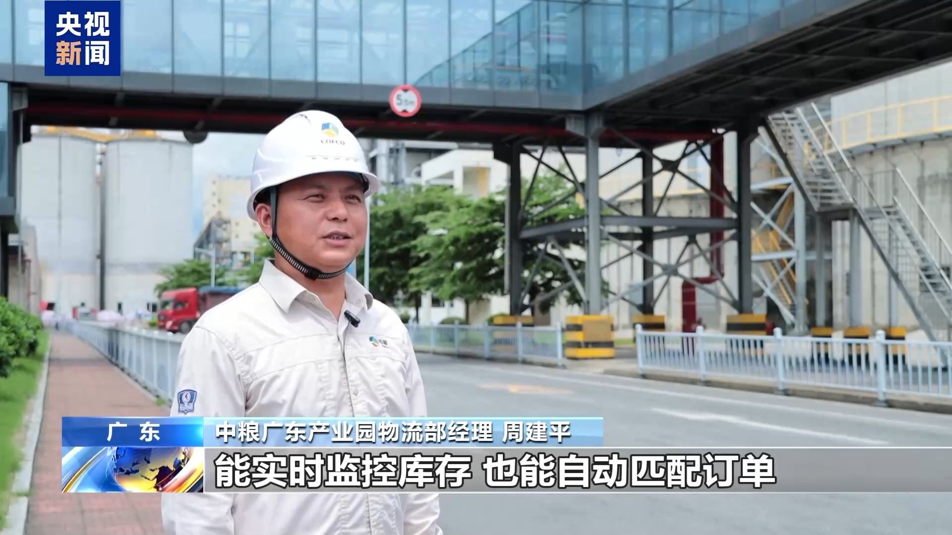 中粮广东产业园物流部经理 周建平:全球领先的数字仓库管理系统能实时监控库存,自动匹配订单,确保“先进先出”,避免时间浪费。