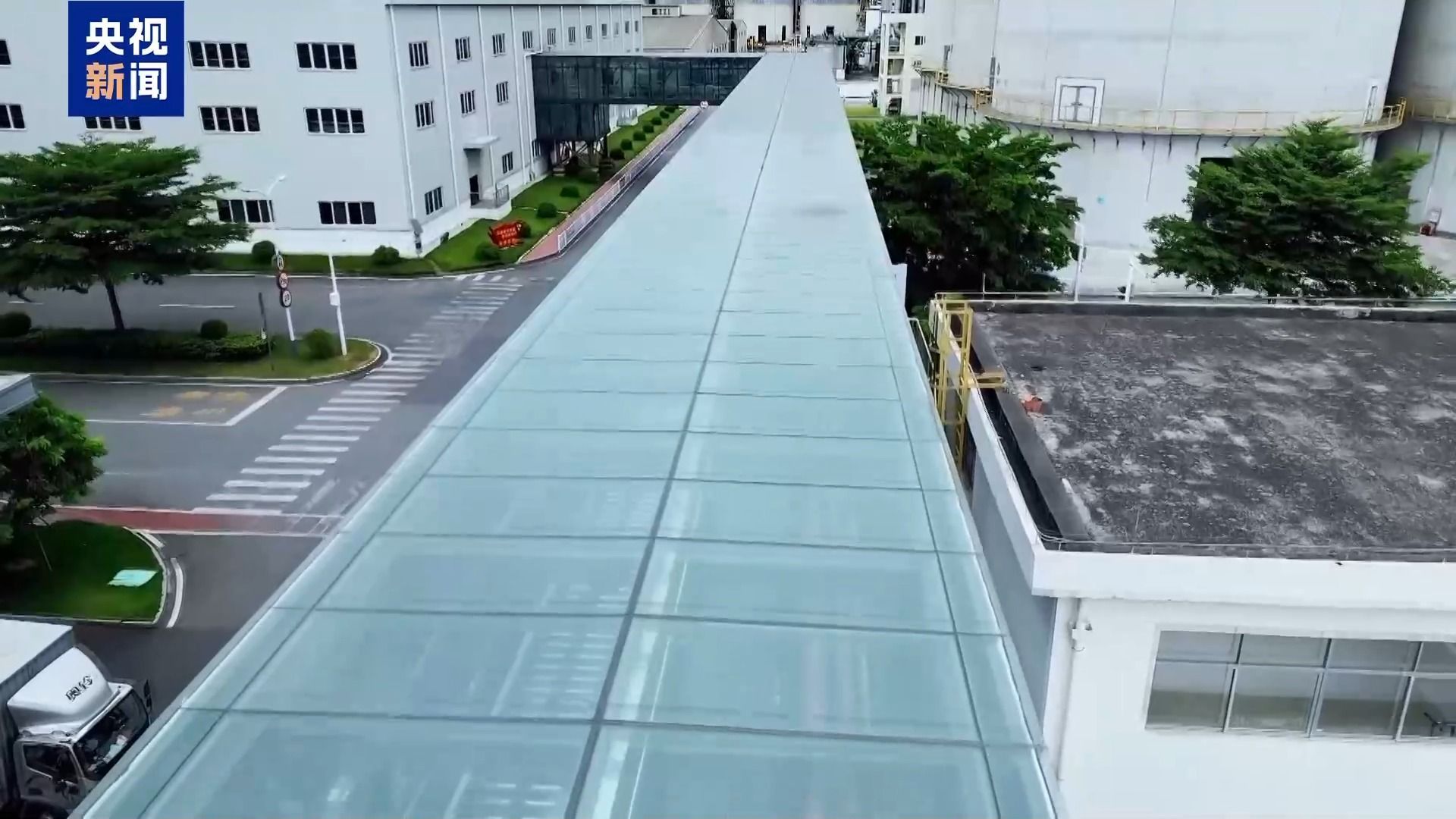 工厂内最引人注目的是一条长300多米的“空中连廊”,成品油通过这条“智能高速路”自动分拣、自动输送到仓库,配合智能仓储系统,货物从生产到出库全程不落地,高效解决成品、空盘等全过程循环作业。