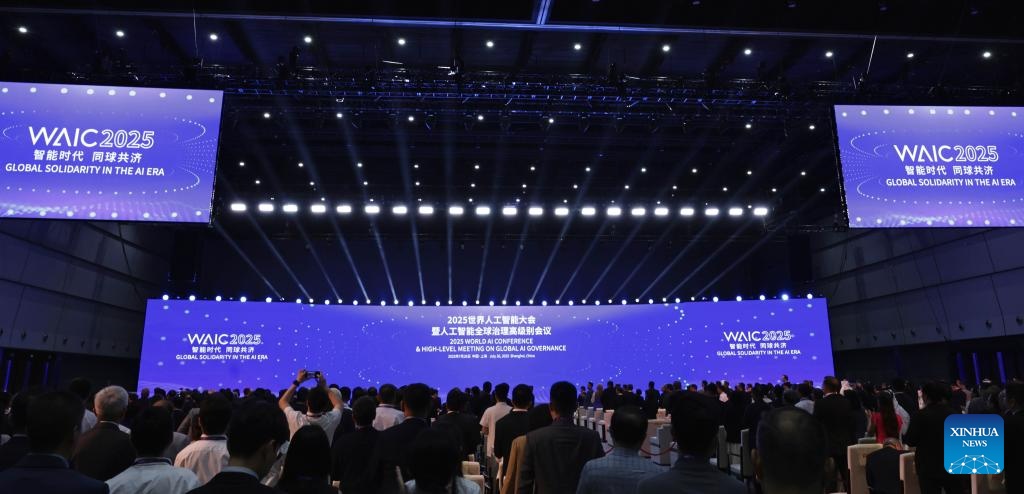 This photo taken on July 26, 2025 shows the opening ceremony of the 2025 World AI Conference and High-Level Meeting on Global AI Governance in east China's Shanghai. The event kicked off here on Saturday. More than 1,000 officials and representatives of industries, universities and research institutes from home and abroad attended the opening ceremony. (Xinhua/Fang Zhe)