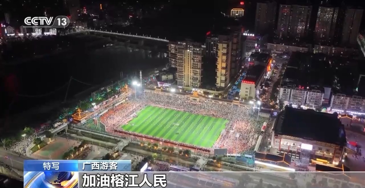 总台记者 郭亦馨:贵州省榕江县“村超”的这片绿茵场,迎来了灾后重启开幕的首个“超级星期六”。正在比拼对决的是,来自贵州本土的队伍和来自辽宁东港的足球队。