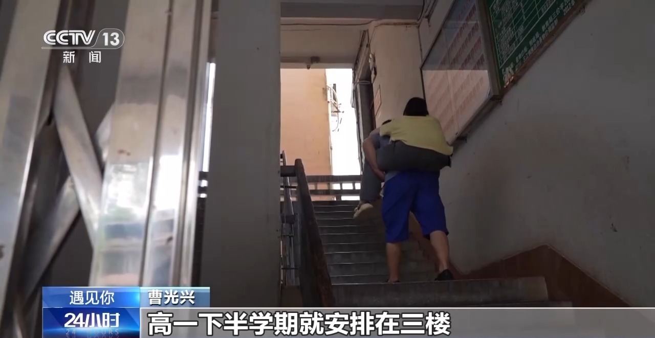 曹雅琳的变化和努力,父亲曹光兴都看在眼里。他选择在女儿的求学路上,日复一日,背着女儿上楼下楼。