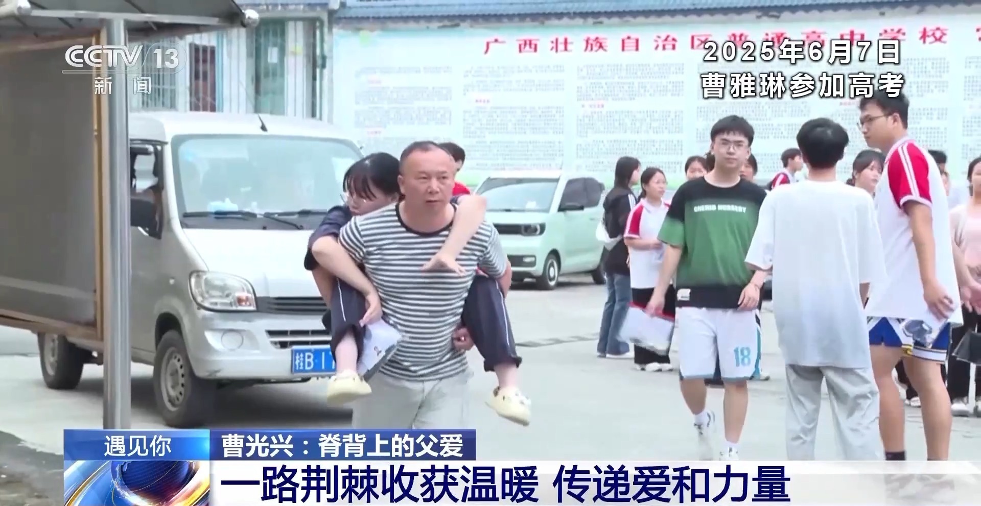 今年高考期间,在广西柳州三江侗族自治县三江中学考点,一位父亲背着女儿走进考场的一幕,感动了万千网友。