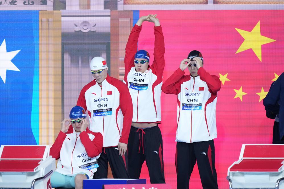 在男子4X100米自由泳接力中,由陈俊儿、王浩宇、刘吴狄、潘展乐组成的中国队以3分11秒15排名第五,澳大利亚队以3分08秒97夺冠,意大利队和美国队分获第二、三名。
