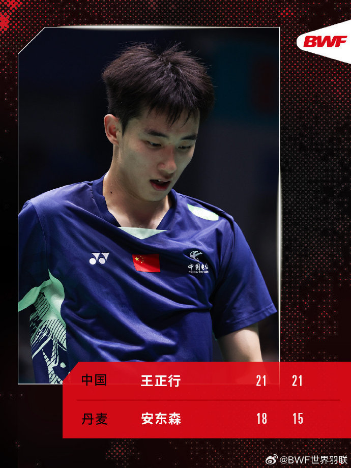 四分之一决赛,王正行直落两局击败法国选手小波波夫,其中第二局在17:20落后的情况下连得五分上演逆转。半决赛,面对丹麦名将安东森,他毫不手软,以21:18、21:15挑落2号种子。