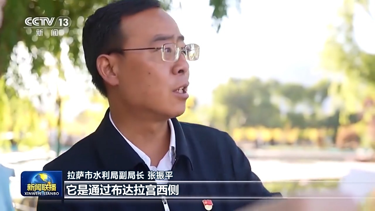 拉萨市水利局副局长 张振平:我们从拉萨河通过中干渠引水,相当于引水入城,我们整个水系连通之后,它是通过布达拉宫西侧,在城里边转一圈又回到拉萨河。