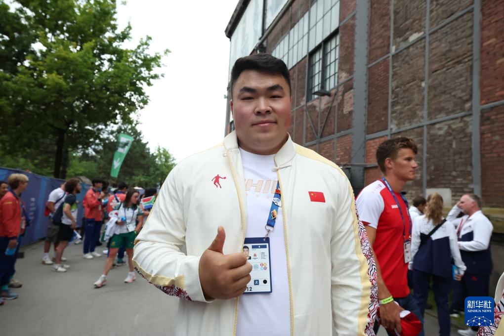 7月27日,中国铅球运动员邢家梁在闭幕式后。新华社记者 张帆 摄