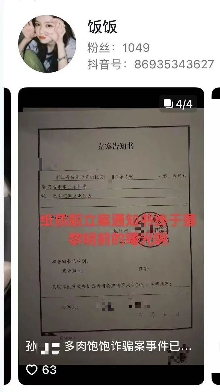 记者获取的资料显示,“多肉饱饱”真名为孙某某。抖音博主“饭饭”告诉红星新闻记者,自己是孙某某涉诈骗案受害者之一,此前其曾以公司补税理由向自己借款约500万元,虽然陆续归还了一些钱款,但仍有几百万元未还。据她了解,目前反映被孙某某诈骗的受害人有五十余人。