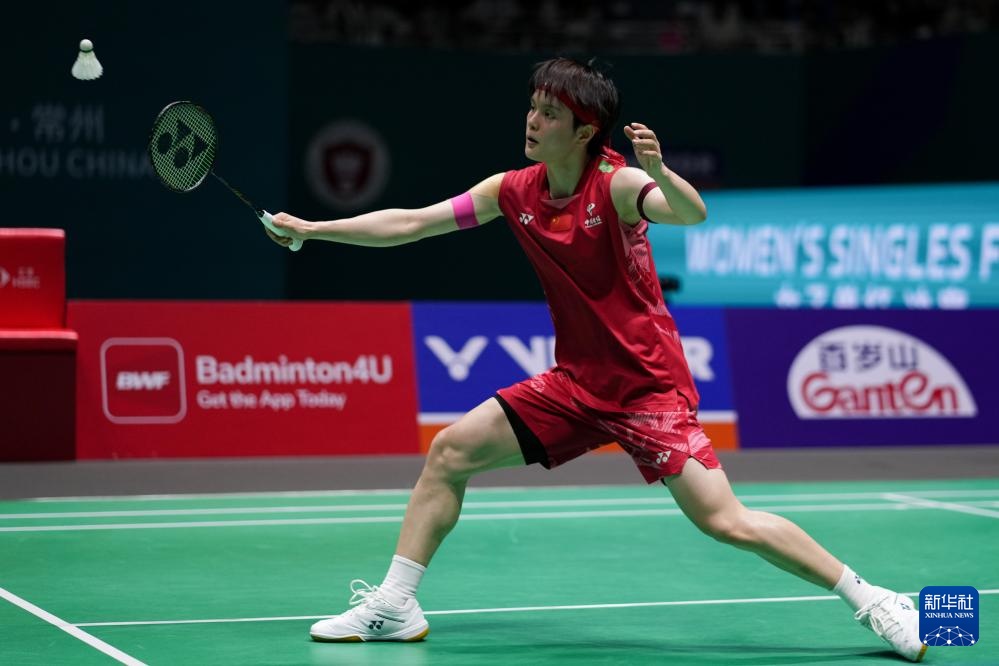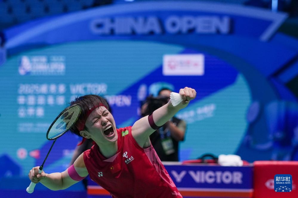 当日,在江苏常州举行的2025中国羽毛球公开赛女单决赛中,中国选手王祉怡以2比0战胜队友韩悦,获得冠军。