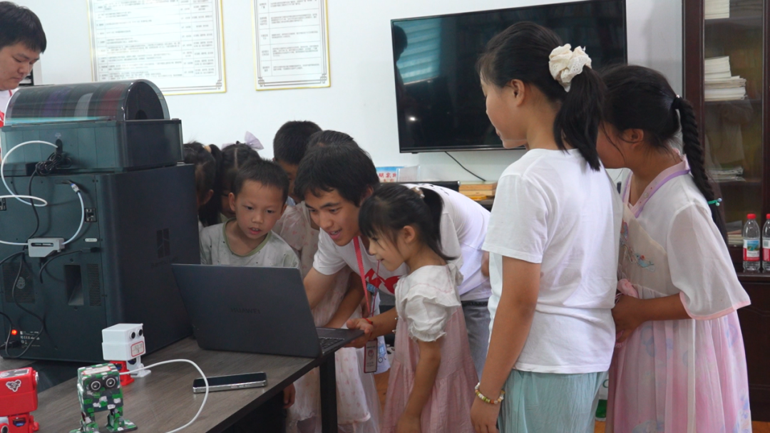 与此同时,前沿科技体验正成为点燃乡村孩子求知热情的“新引擎”。在万冲村的“爱心托管班”,由中国地质大学(武汉)志愿者带来的双足机器人操作、3D打印等课程,为孩子们打开了一扇通往科技世界的大门。“今天我学到了3D打印,见到了许多机器人,我感到科技的力量是无比神奇的,我以后每天都想来!”万天翊兴奋地说。孝昌县实验小学六年级学生阳宇辰也开心地表示:“这个课上有机器人,还有好多小朋友一起学习一起玩,我感觉特别好。”