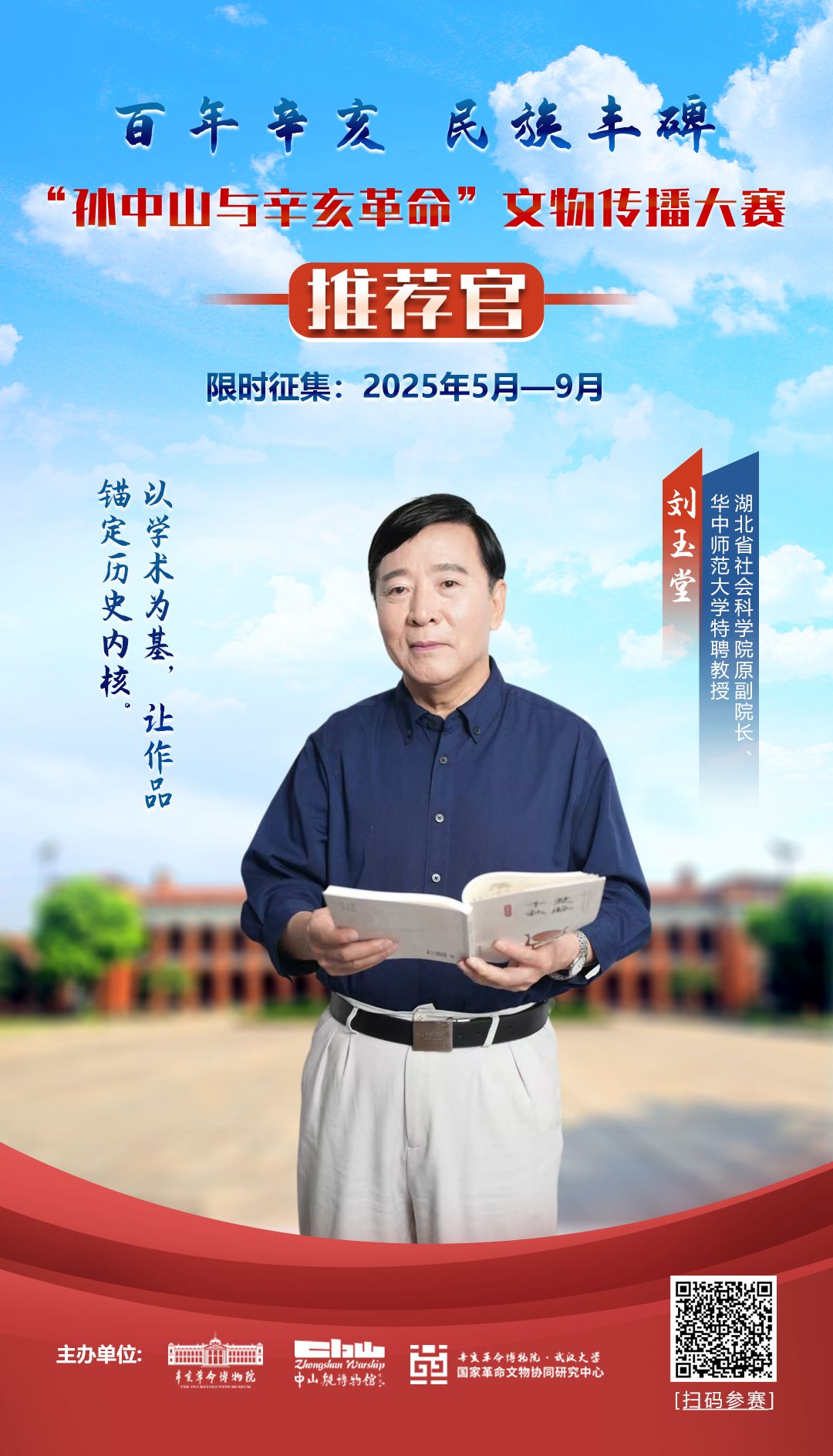 作为湖北省社会科学院原副院长、华中师范大学特聘教授,刘玉堂教授深耕历史领域数十载。作为评委,他将以深厚的学术积淀为评审标准,从文物的历史语境出发,审视作品是否精准提炼辛亥志士的革命精神内核、是否具备历史厚重感与说服力。