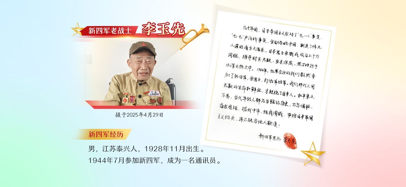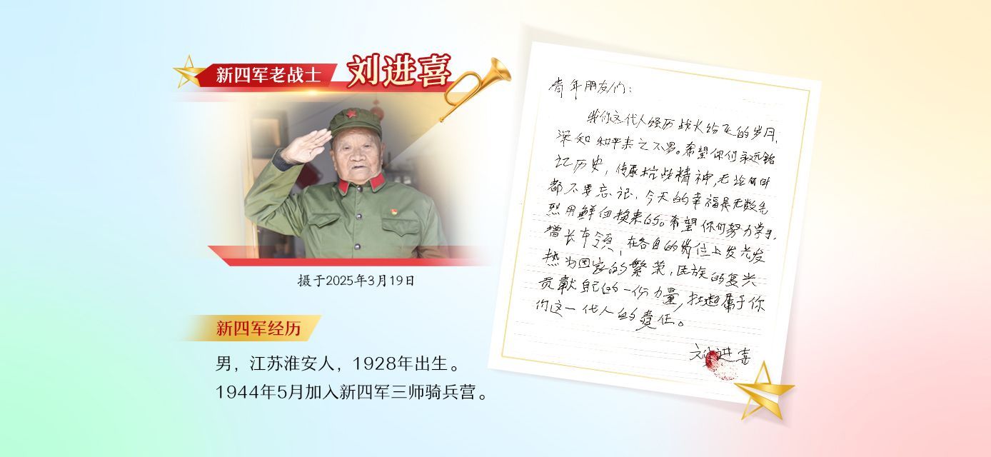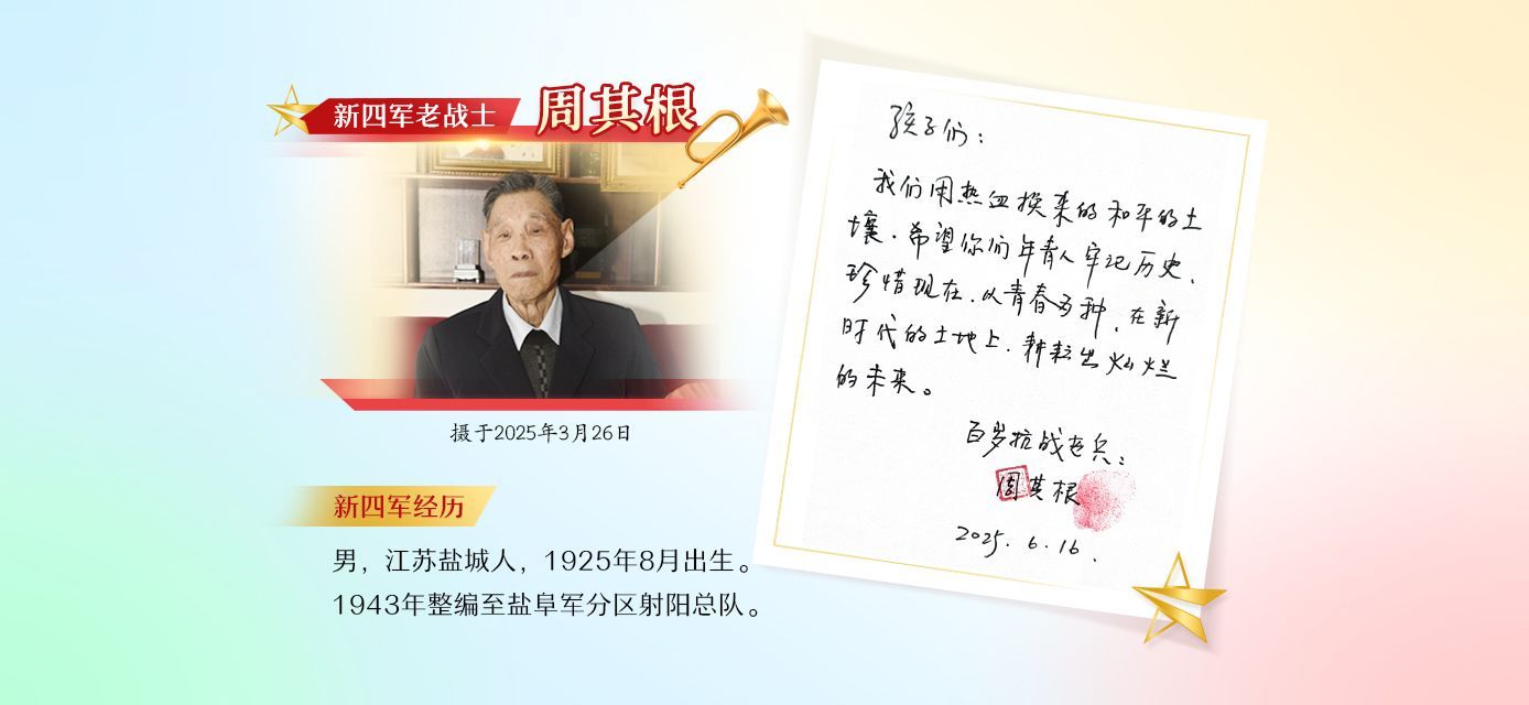 “中国人民抗日战争的胜利,是经过多少同志的流血牺牲取得的。我们绝不能忘记过去!”硝烟散去,精神永存。采访的最后,欧老寄语当代青年,将铁军精神一代又一代接力传承下去,让奋勇拼搏的火种生生不息。