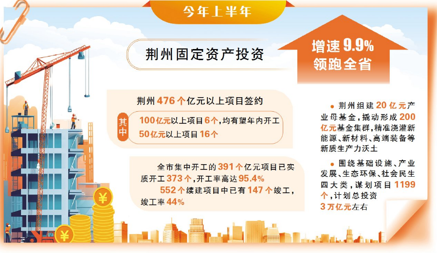 这些看得见的建设图景,正是荆州上半年固定资产投资以9.9%增速,领跑全省的生动注脚。