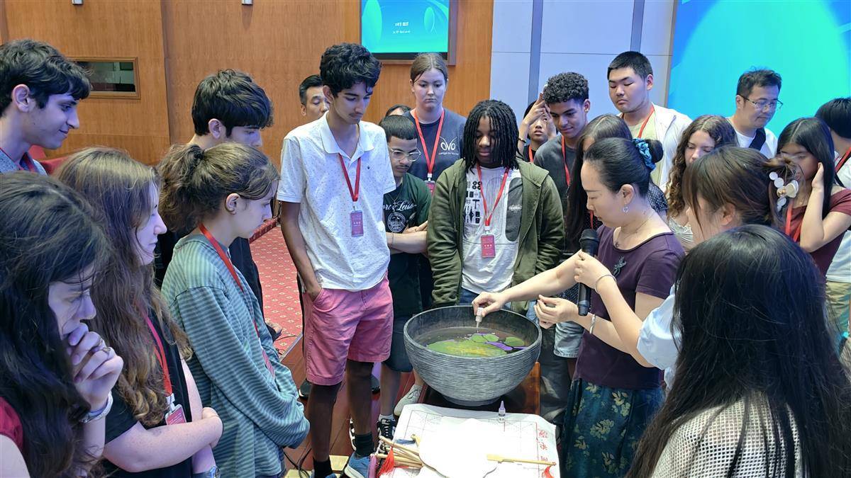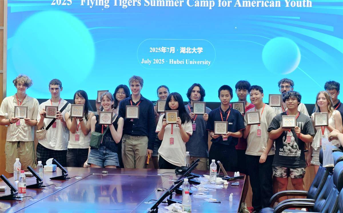 7月28日下午,近百名美国“飞虎队”夏令营成员在湖北大学沉浸式体验荆楚文化。三项传统文化活动中(珍珠布贴、太极扇、漆扇书法),中美青年以实践搭建对话平台。