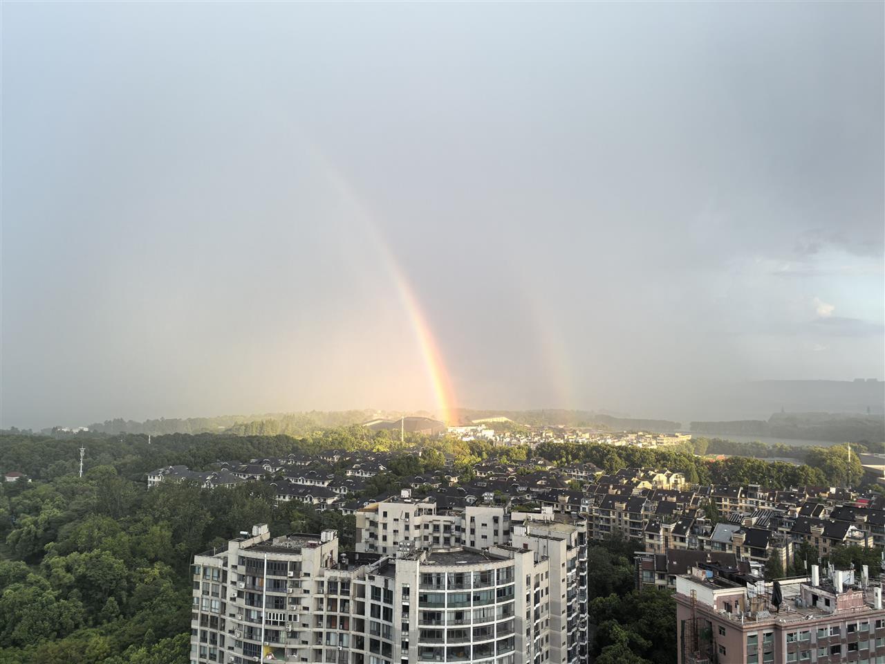 不过,别忘了“风雨之后见彩虹”。这场太阳雨啊,给大家送了一个彩蛋——彩虹。