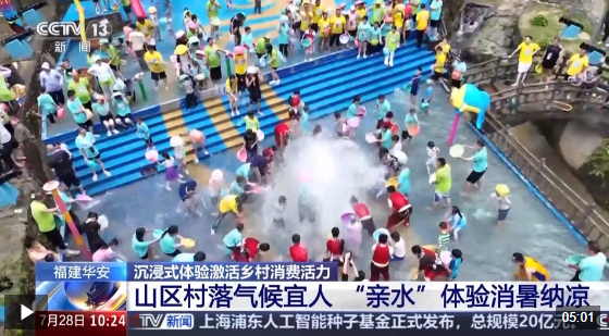 近年来,乡村游市场持续火热,“可看、可玩、可尝、可买”的农旅融合消费场景不断涌现。福建华安县坪水村,基于当地的泼水习俗,在暑期开展泼水狂欢活动,吸引不少游人。一起跟随总台记者,去现场体验一下吧。