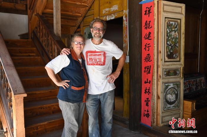图为约翰·弗劳尔夫妇在中国民居前合影。中新社记者 陈孟统 摄