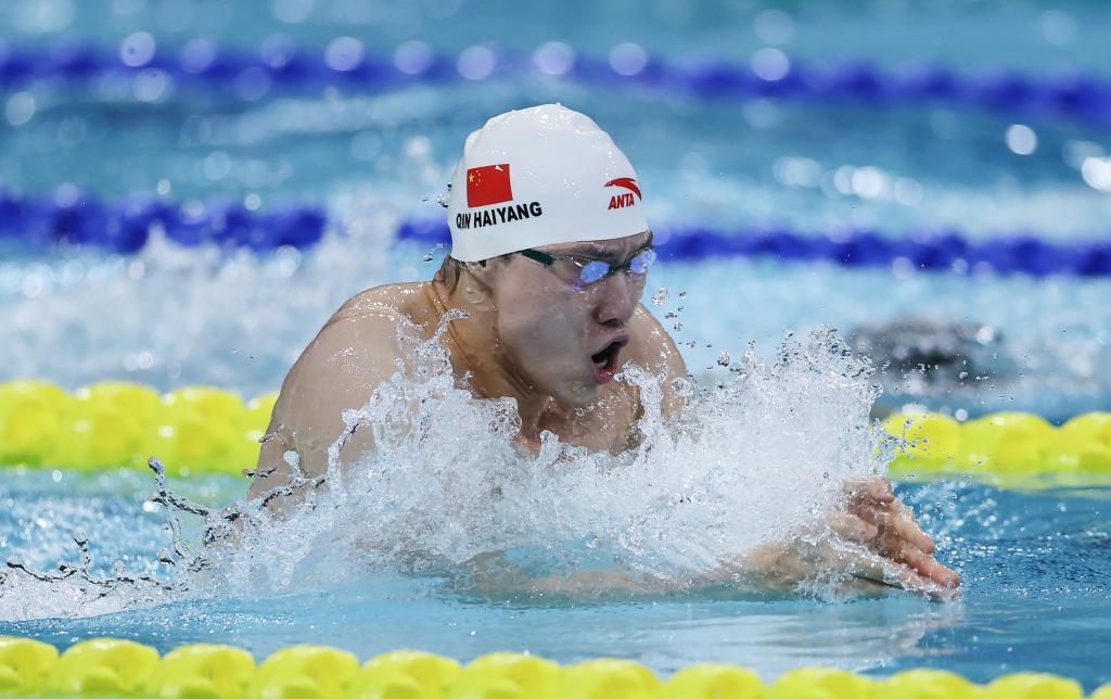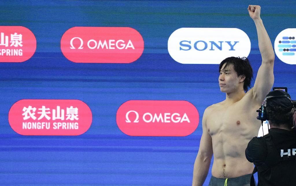 当日男子100米蛙泳决赛中,他后程发力以58秒23的成绩夺得冠军,比巴黎奥运会该项目冠军、意大利选手马丁嫩吉快了0.35秒,后者以58秒58的成绩摘银。
