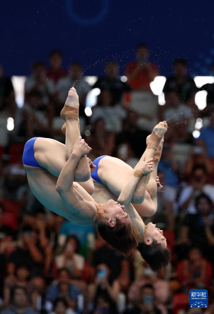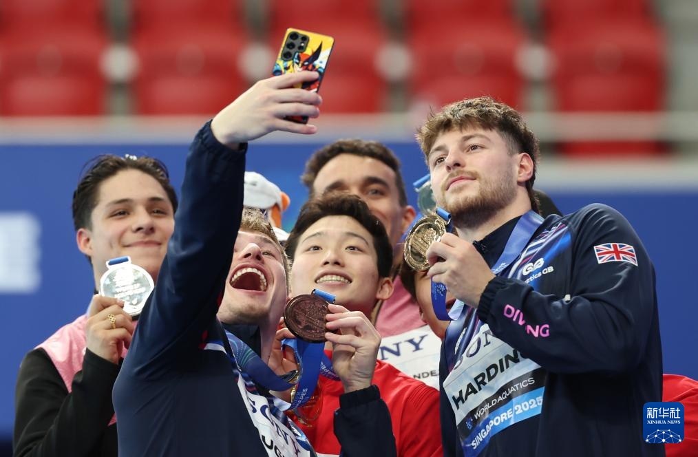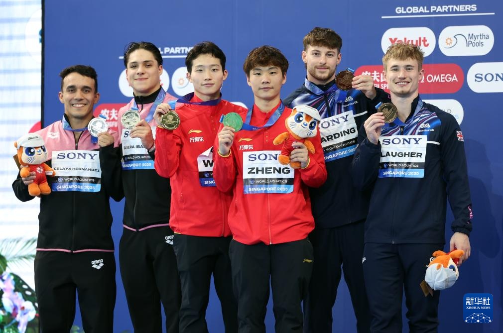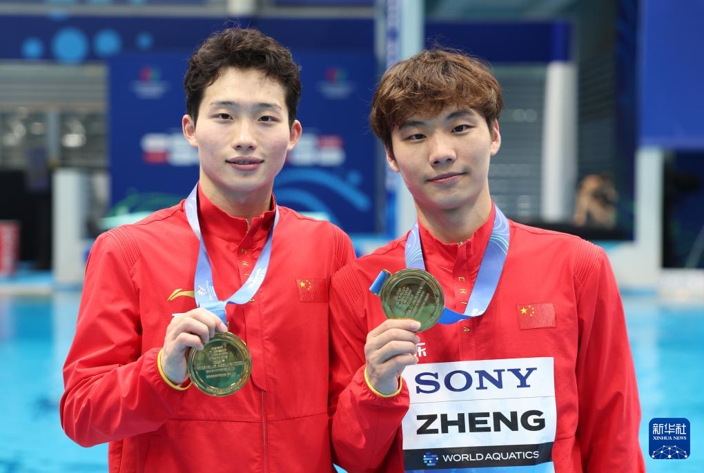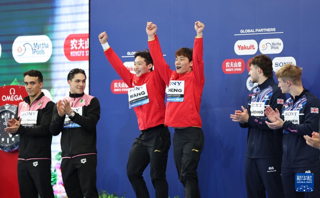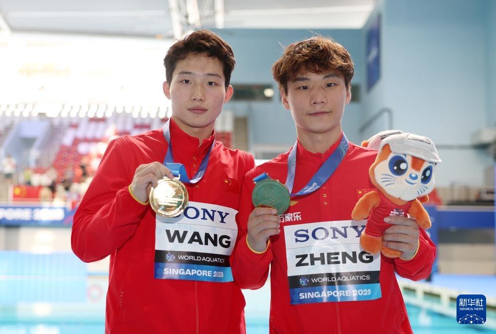 当日,在新加坡举行的2025年世界游泳锦标赛跳水男子双人3米板决赛中,中国队组合王宗源/郑九源夺冠。