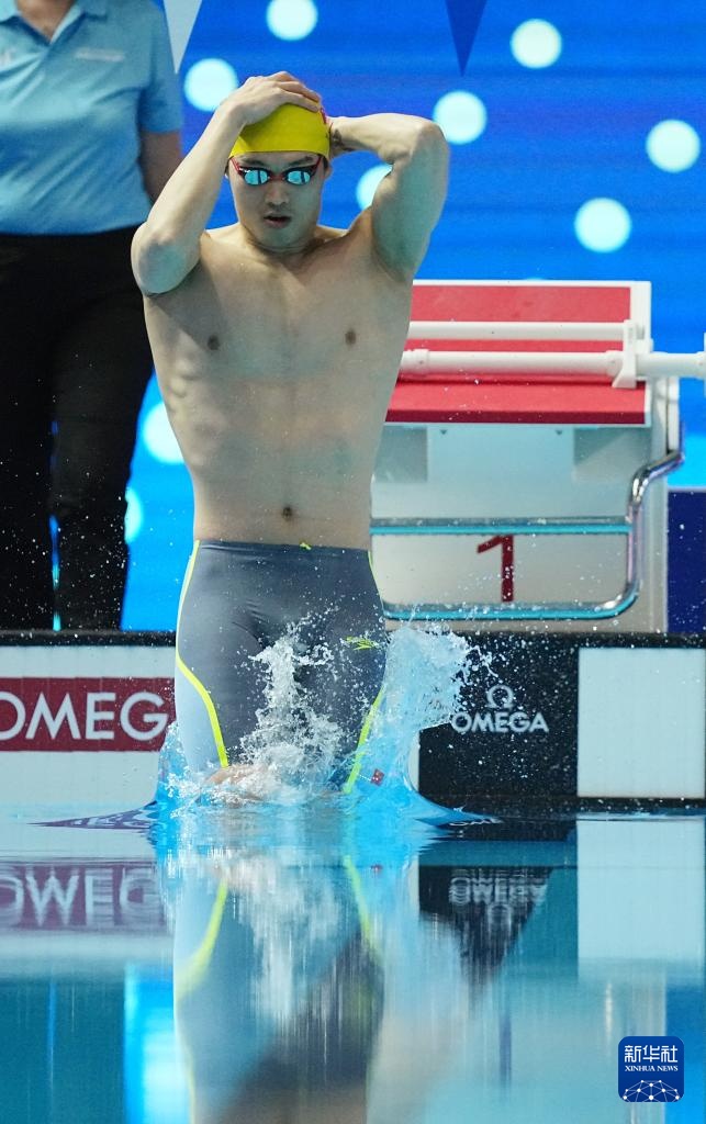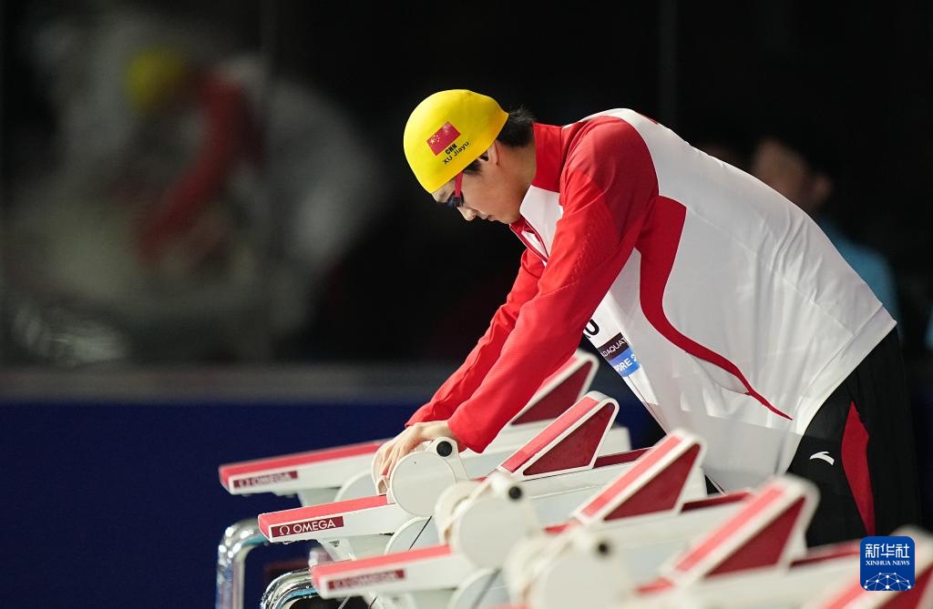 当日,2025年世界游泳锦标赛游泳男子100米仰泳半决赛在新加坡举行。
