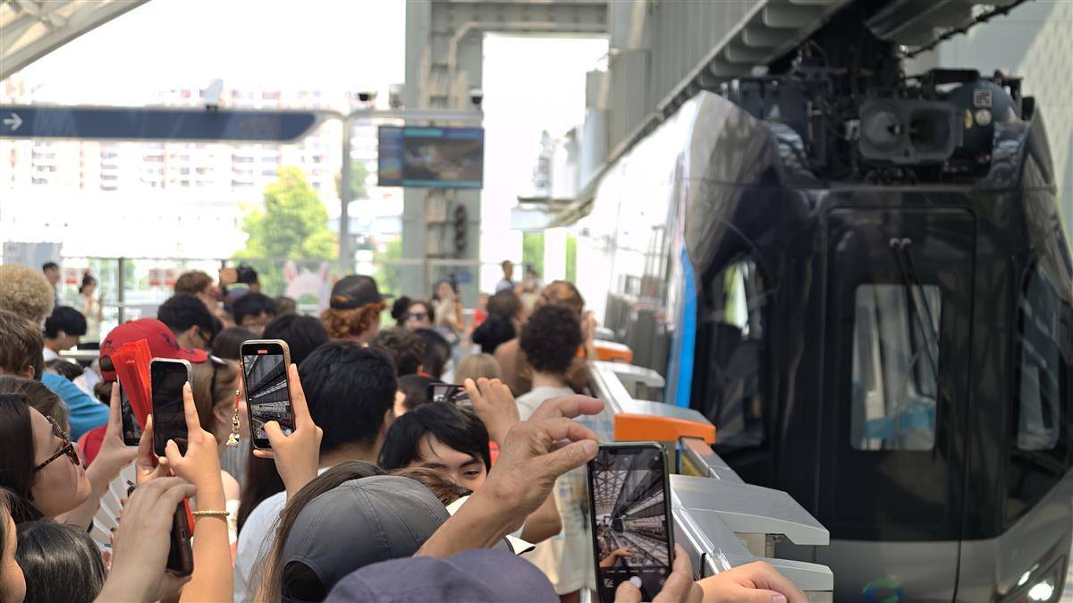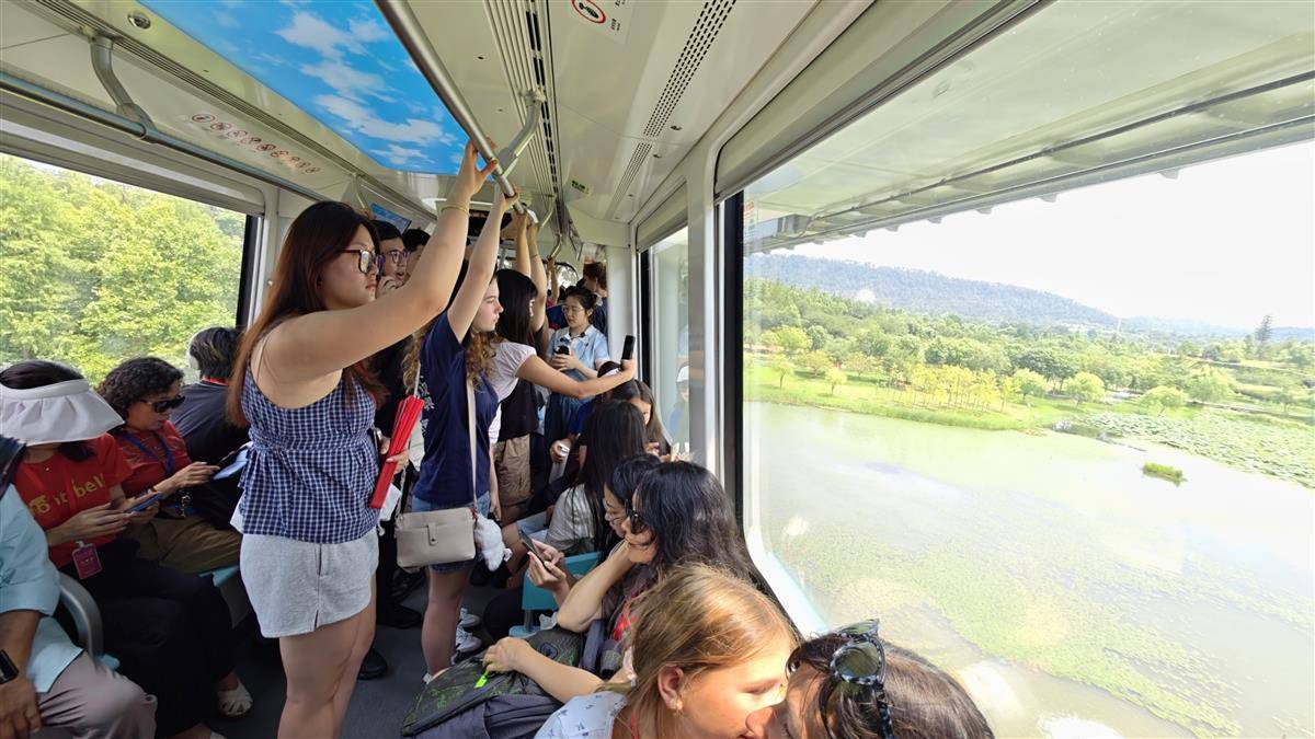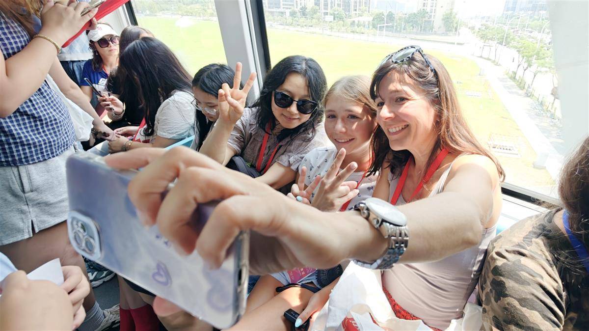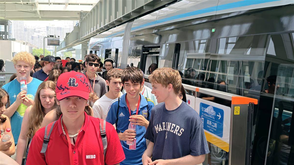 7月29日上午,武汉光谷光子号空轨迎来了一批特殊的“试乘员”——来自美国“飞虎队”青少年夏令营的近百名成员。他们兴致勃勃地体验了这条驰骋于空中的智慧轨道,对高科技带来的独特体验赞不绝口,纷纷为武汉的创新科技与现代化风貌点赞。(湖北日报全媒记者 陈少哲 摄)