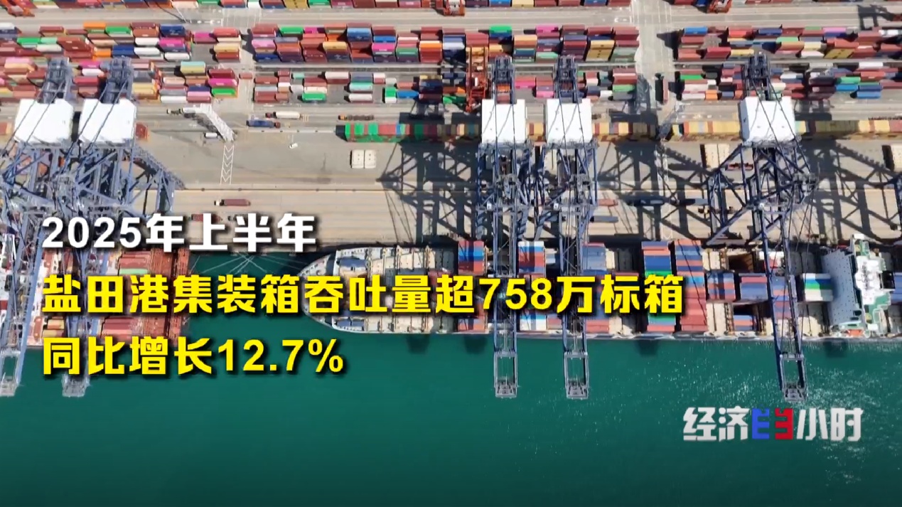 盐田港是世界上最大的单体集装箱码头之一,每天都有超过4万个标准集装箱,从这里发往全球。深圳海关数据显示,今年上半年,盐田港集装箱吞吐量超758万标箱,同比增长12.7%。