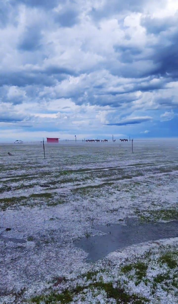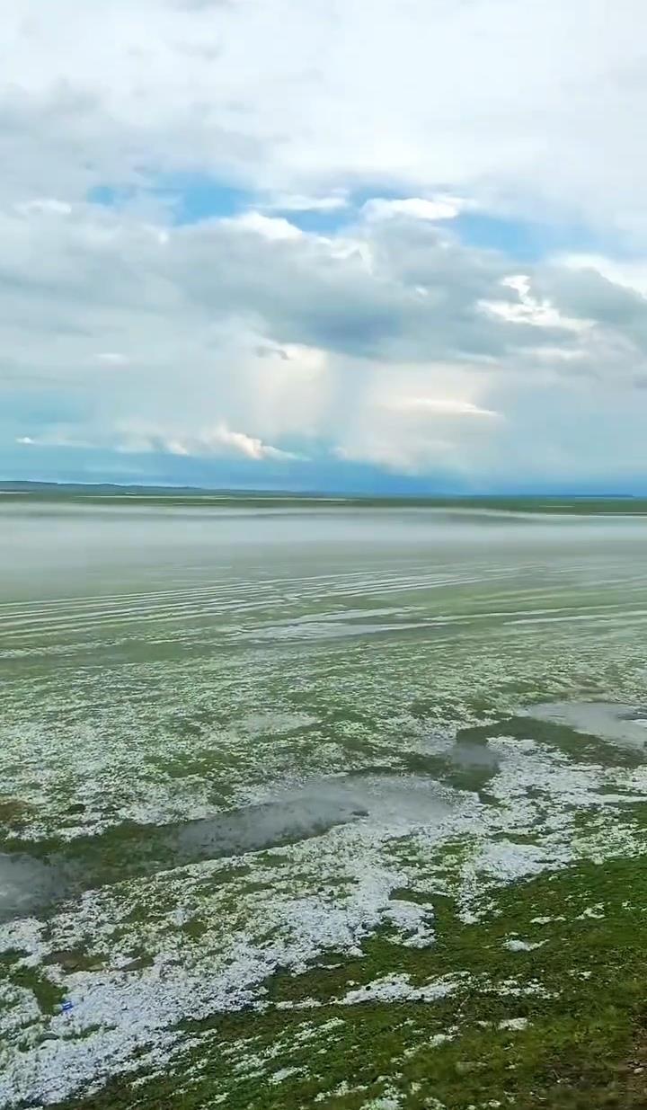 突降冰雹的呼伦贝尔草原白茫茫一片(视频截图)
