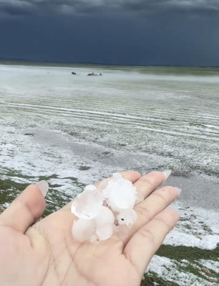 内蒙古呼伦贝尔当地人李女士告诉极目新闻记者,28日下午2时许,她乘车经过呼伦贝尔新巴尔虎左旗时,突降暴雨并伴有冰雹,持续了30分钟左右,冰雹打得车玻璃啪啪响。新巴尔虎左旗另一名网友告诉记者,他是在下午3时30分左右遇到的冰雹,眼前绿油油的草原已经变成了白茫茫的“雪原”。