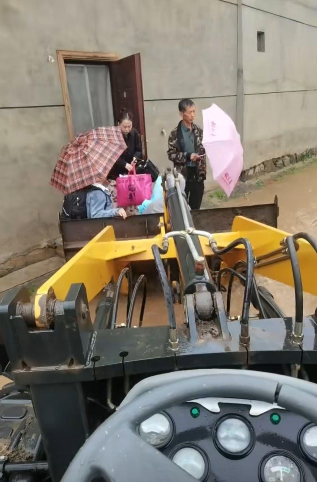 村民开挖掘机帮忙转移受灾村民(来源:受访者提供)