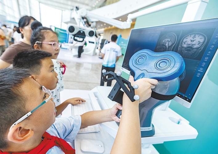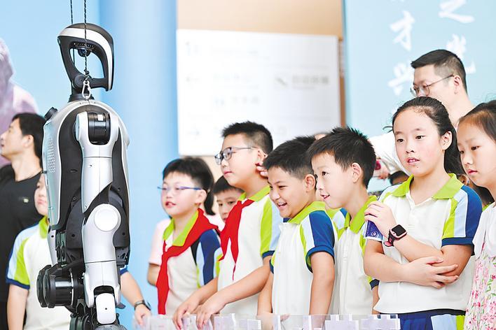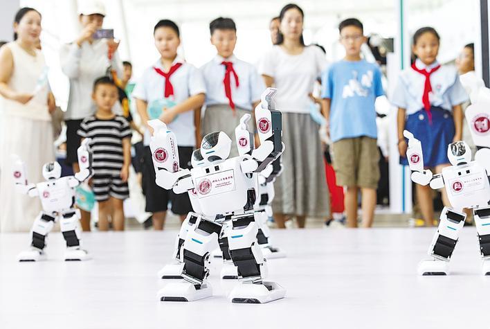 人才周活动现场,看到AI展区的机器人、各种智能装备以及小朋友们与机器人斗舞,东方红小学学生彭宇两眼放光,他说自己喜欢AI,正在学习编程课,未来要好好努力,争取自己制造出机器人来。