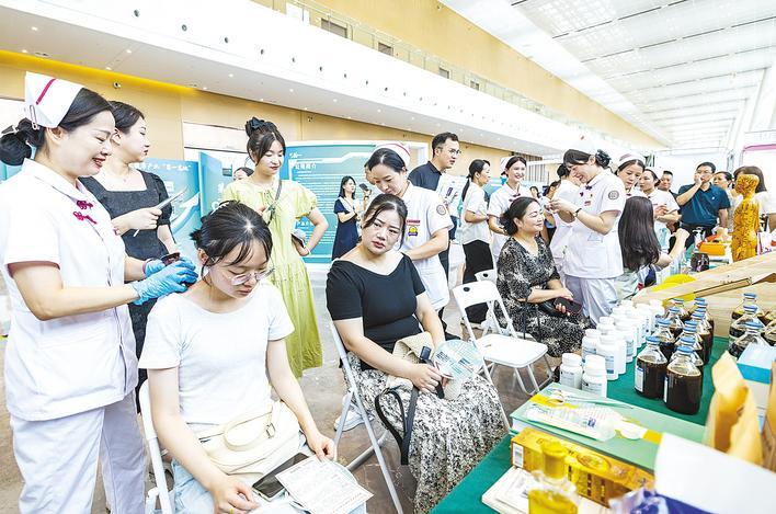 现场的体验互动区,鄂州市中医院引进的AI设备,患者只需伸出舌头便可诊断出病情并开出诊疗建议,甚至连处方都开好。