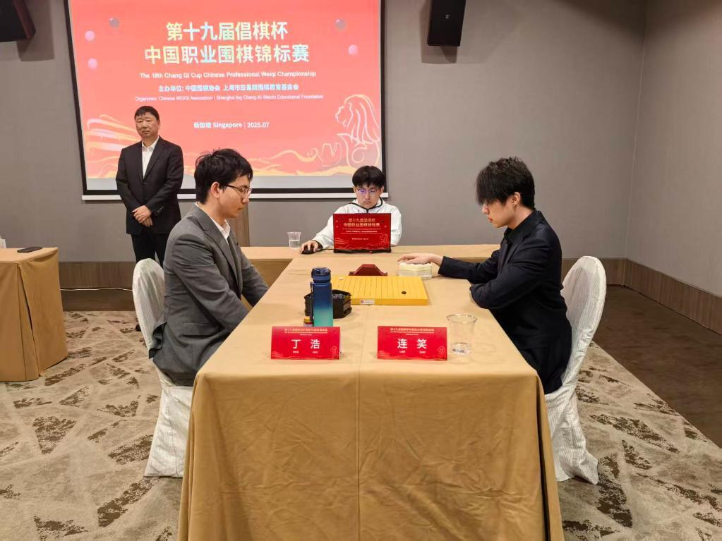 另一场较量中,丁浩九段执黑不计点胜连笑九段,这盘棋双方在前半盘势均力敌,在激烈的劫争中错进错出。连笑没能把握住稍纵即逝的机会,又因为延时被罚了两点。眼看白棋的实空难以追上,连笑中盘认输。