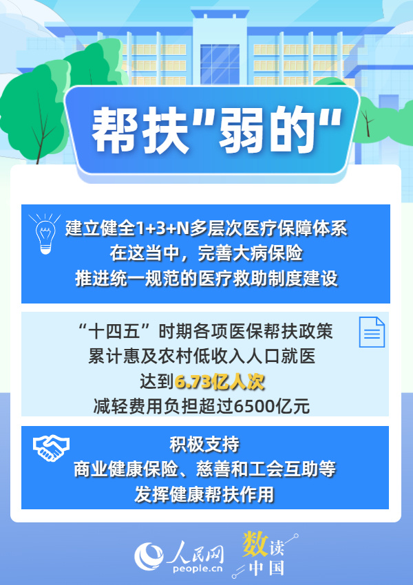 今年是“十四五”全民医保规划的收官之年。“十四五”期间,我国持续巩固全民参保成果,全国基本医保参保率稳定在95%左右。聚焦“解除全体人民的疾病医疗后顾之忧”,我国做了哪些具体工作?一组数据来看。