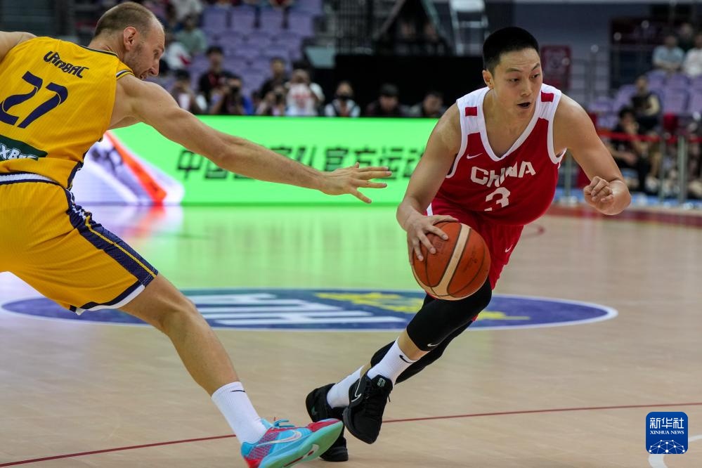 7月29日,中国队球员胡明轩(左二)在比赛中带球突破。新华社记者 李博 摄