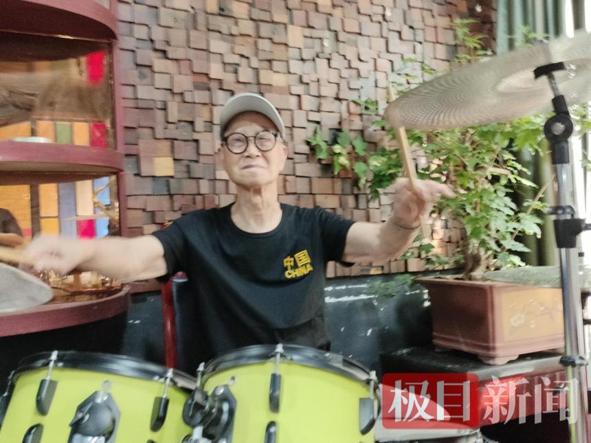 鞠万坤正在打架子鼓(通讯员 供图)