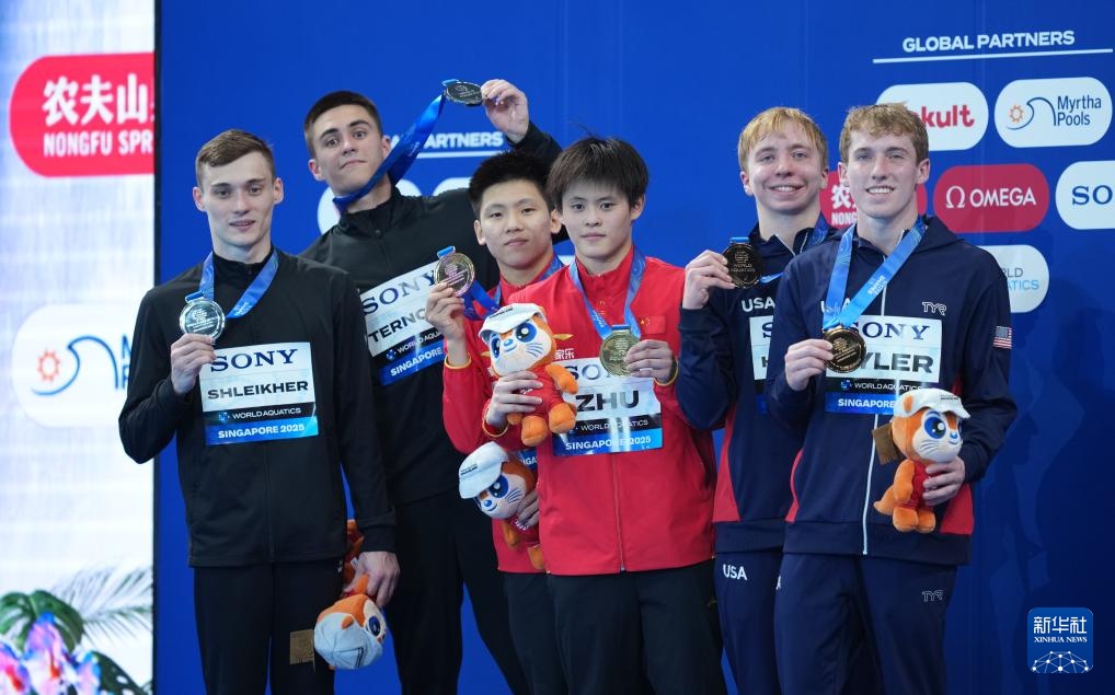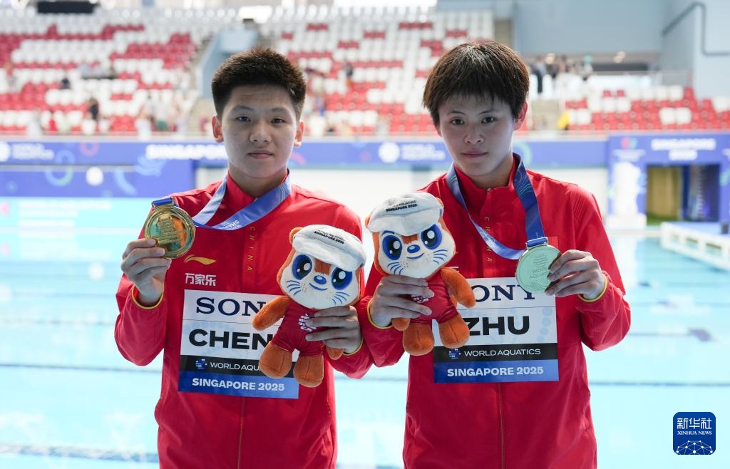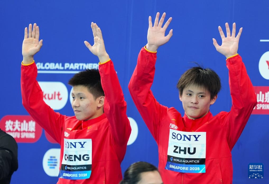 当日,在新加坡举行的2025年世界游泳锦标赛跳水男子双人10米台决赛中,中国组合程子龙/朱子锋夺冠。