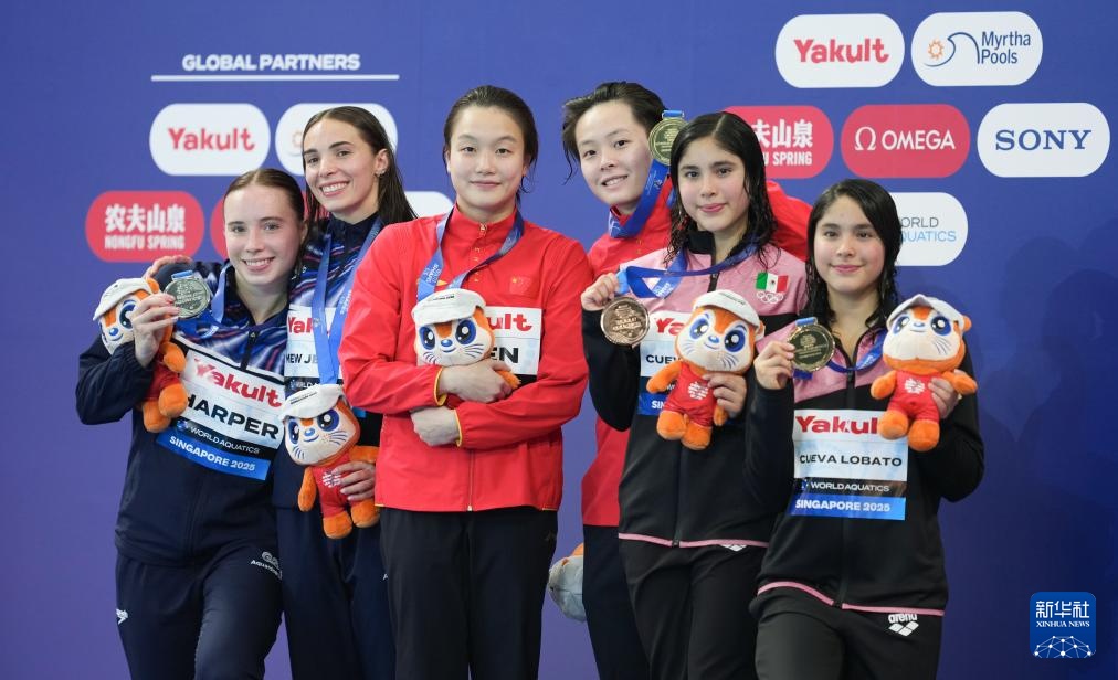 当日,在新加坡举行的2025年世界游泳锦标赛跳水女子双人3米板决赛中,中国组合陈艺文/陈佳夺冠。