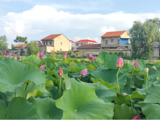 峒山村里新沟二队的荷花竞相开放。周亚楠摄
