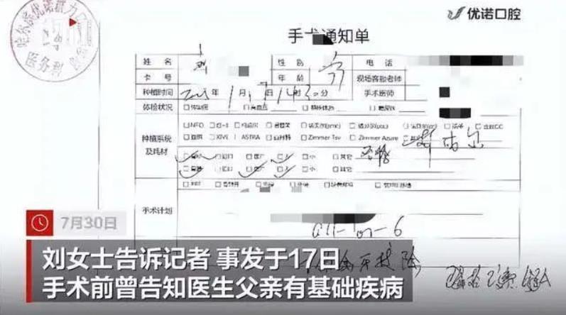 近日,哈尔滨市民刘女士投诉称,她77岁患有高血压、糖尿病、冠心病并植入5个心脏支架的父亲,于7月17日在哈尔滨市优诺口腔门诊一次性被拔除12颗牙齿并种植6颗牙后,离开医院仅几十分钟便突发不适、吐血,最终身亡。