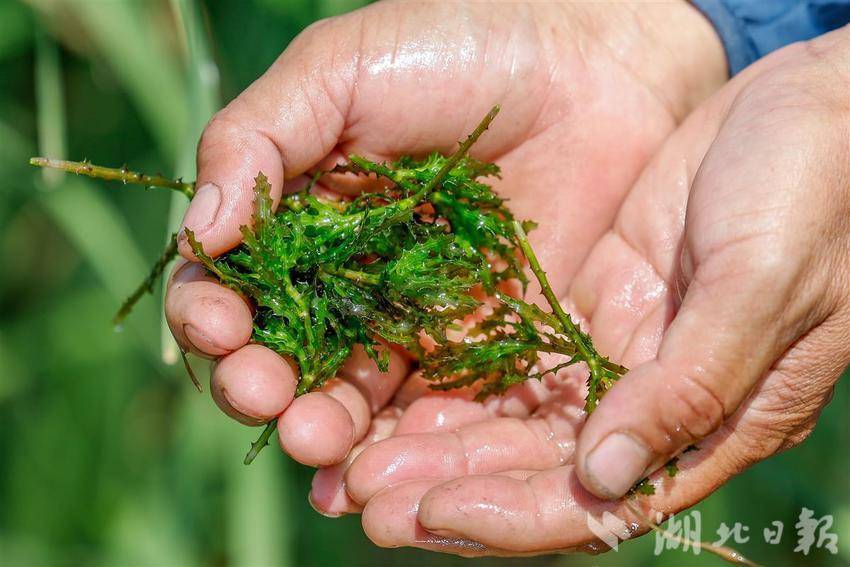 6月16日,洪湖村民随手从湖中捞起的水草。(湖北日报全媒记者 倪娜 摄)