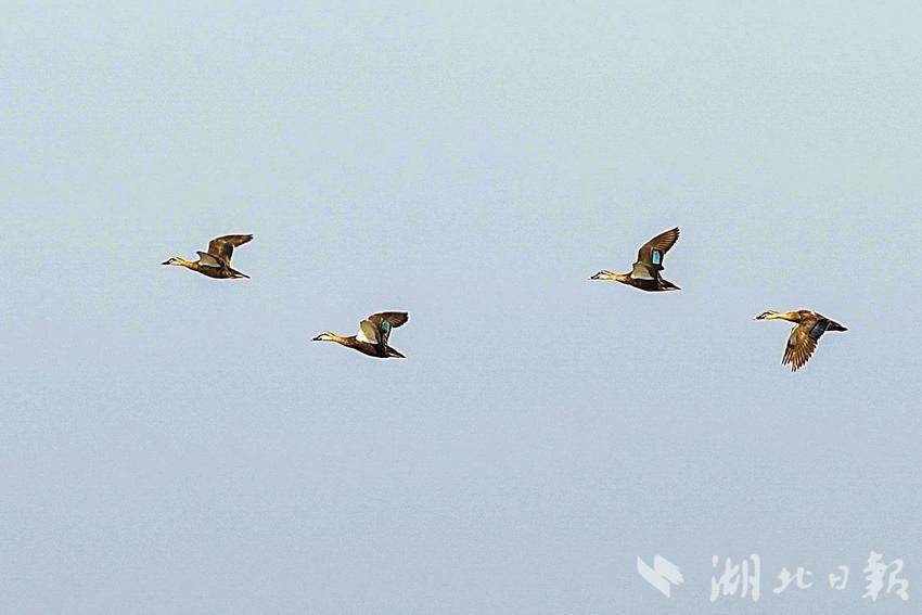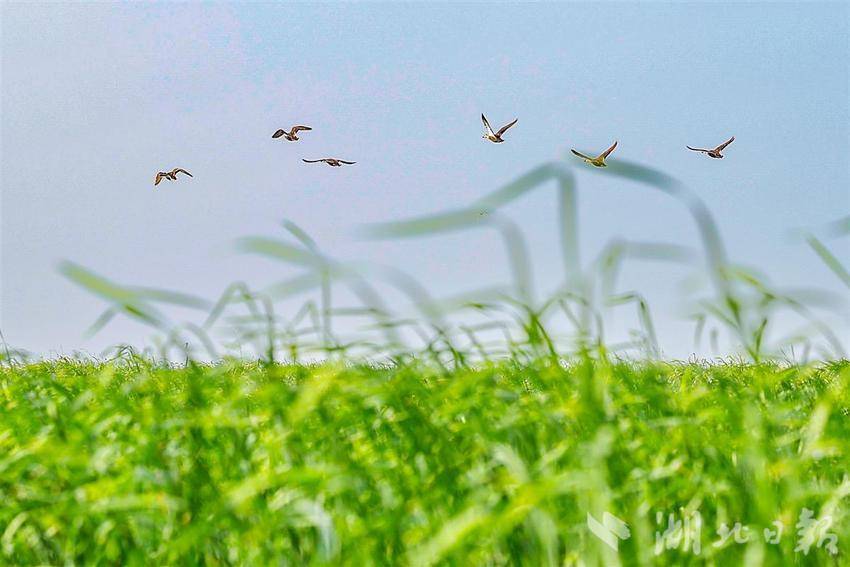 6月16日,在洪湖朱斗湖附近水域,当船驶过,不时有水鸟从草丛中惊起。(湖北日报全媒记者 倪娜 摄)