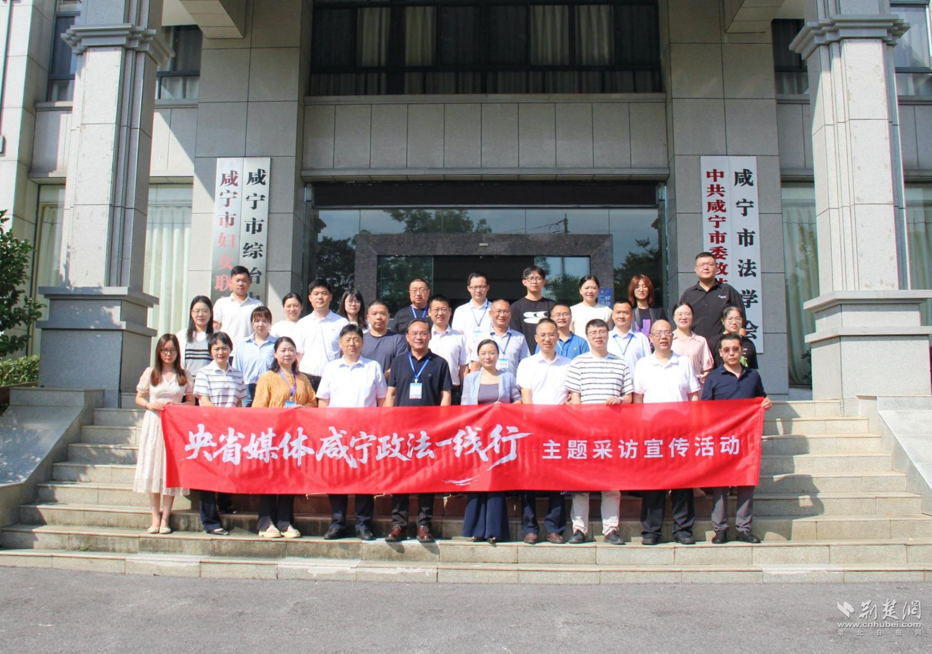 “央省媒体咸宁政法一线行”主题采访宣传活动合影。记者 肖慧婷 摄