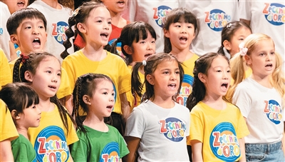 近日,中国上海的绣球花小合唱团与意大利安东尼亚诺小合唱团在博洛尼亚共同演唱歌曲。