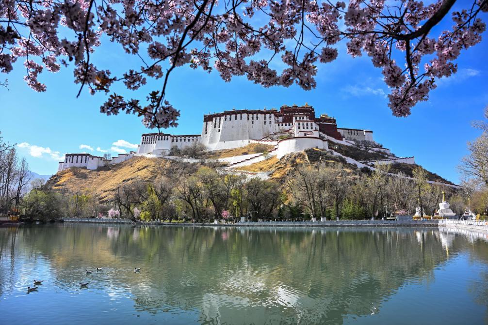 Photo shows a view of the Potala Palace from the Dzongyab Lukhang Park in Lhasa, southwest China's Xizang autonomous region. (Photo/Urgyen Tsering)